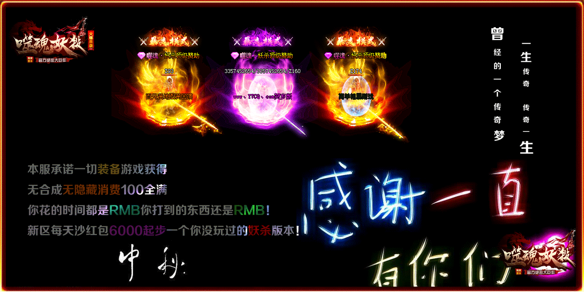 - 【版本说明】: 上线就送MAX刀速+双倍爆率提升.装备嗷嗷全爆.人人土豪装逼又激情!